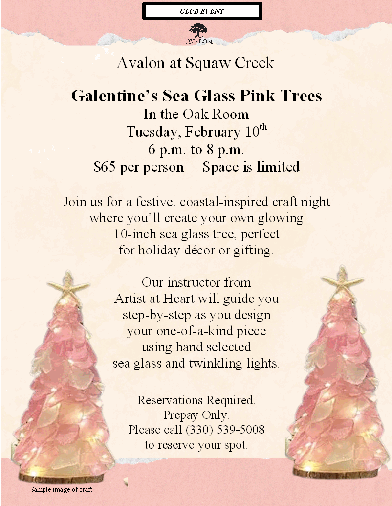 Galentine’s Sea Glass Pink Tree Tuesday, February 10th at Squaw Creek