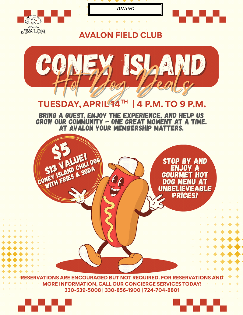 Coney Island Hot Dog Deals Tuesday, April 14th at Field Club