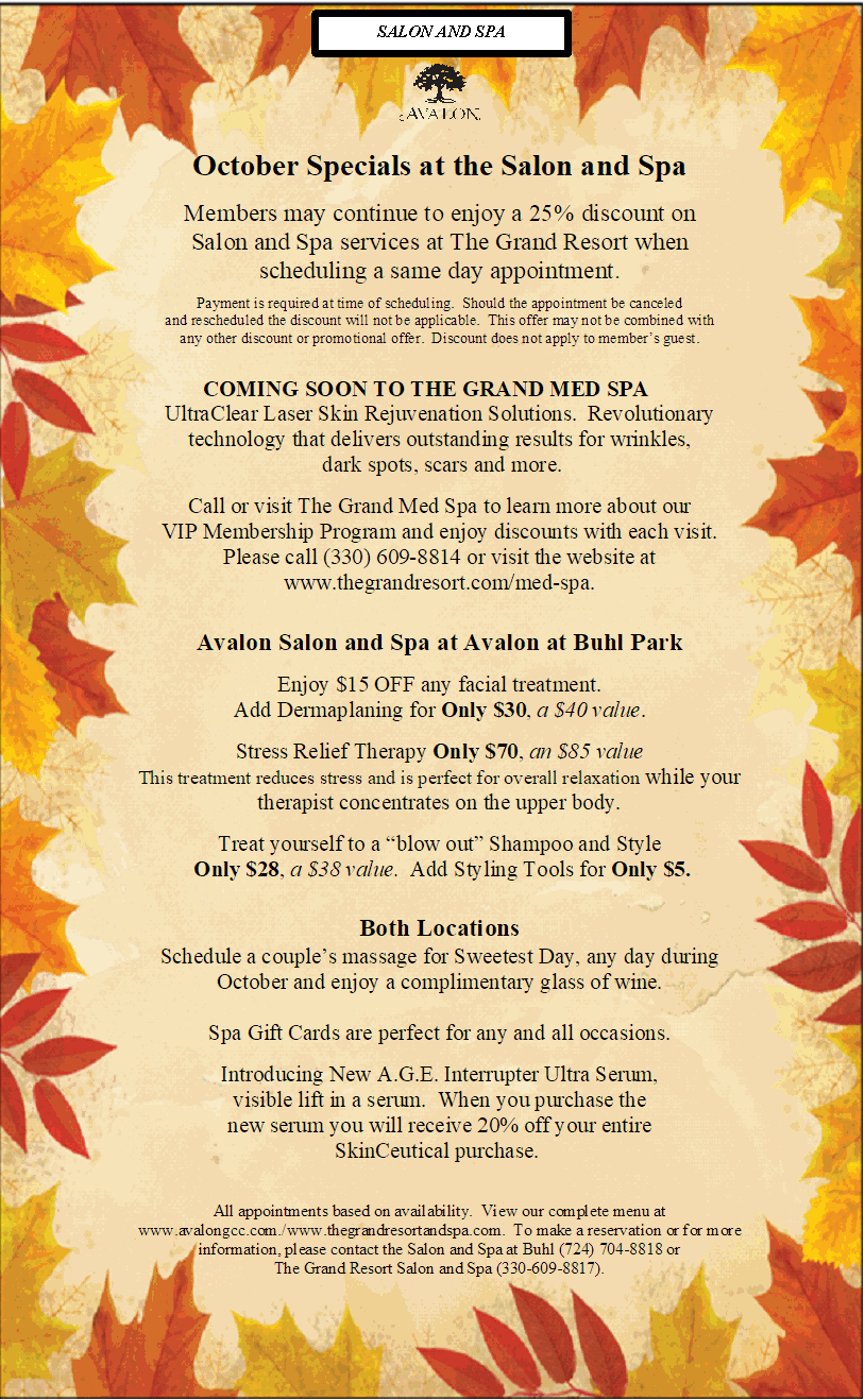 October Specials at The Salon and Spa