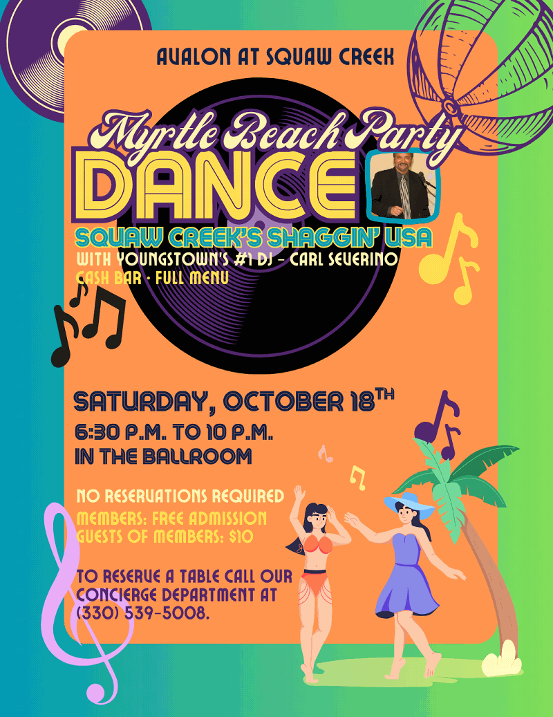 Myrtle Beach Dance Party Saturday, October 18th at Squaw Creek