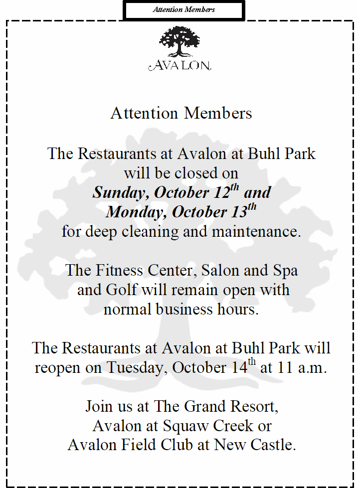 Sunday, October 12th and Monday, October 13th at Avalon at Buhl Park