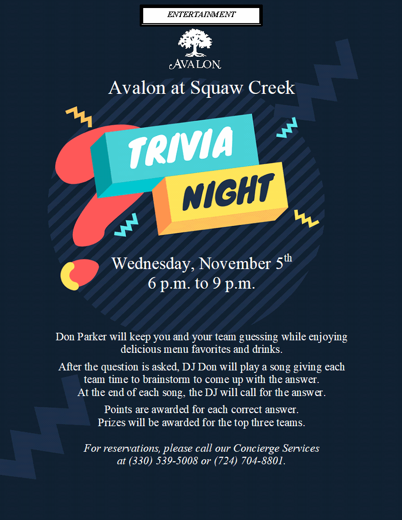 Team Trivia Wednesday, November 5th at Squaw Creek