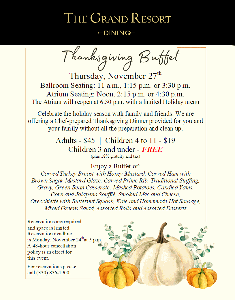 Thanksgiving Buffet Thursday, November 27th at The Grand Resort