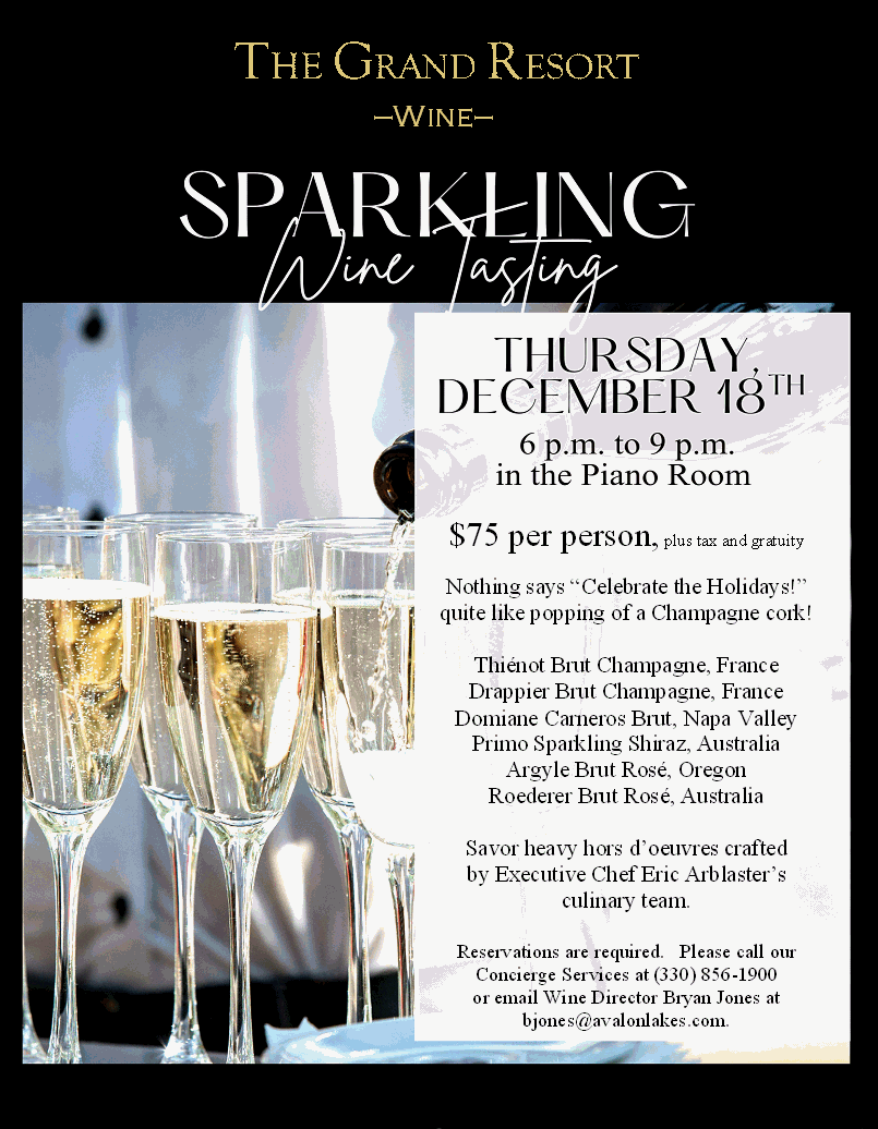 Sparkling Wine Tasting Thursday, December 18th at The Grand Resort