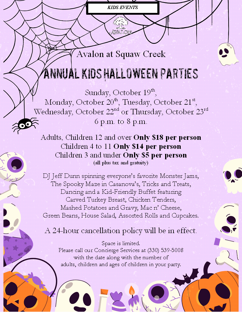 Oct 23 0 Annual Kids Halloween Parties at Avalon at Squaw Creek By Secretary | Dining, Kids Activities / Childcare, Rec Center & Game Room