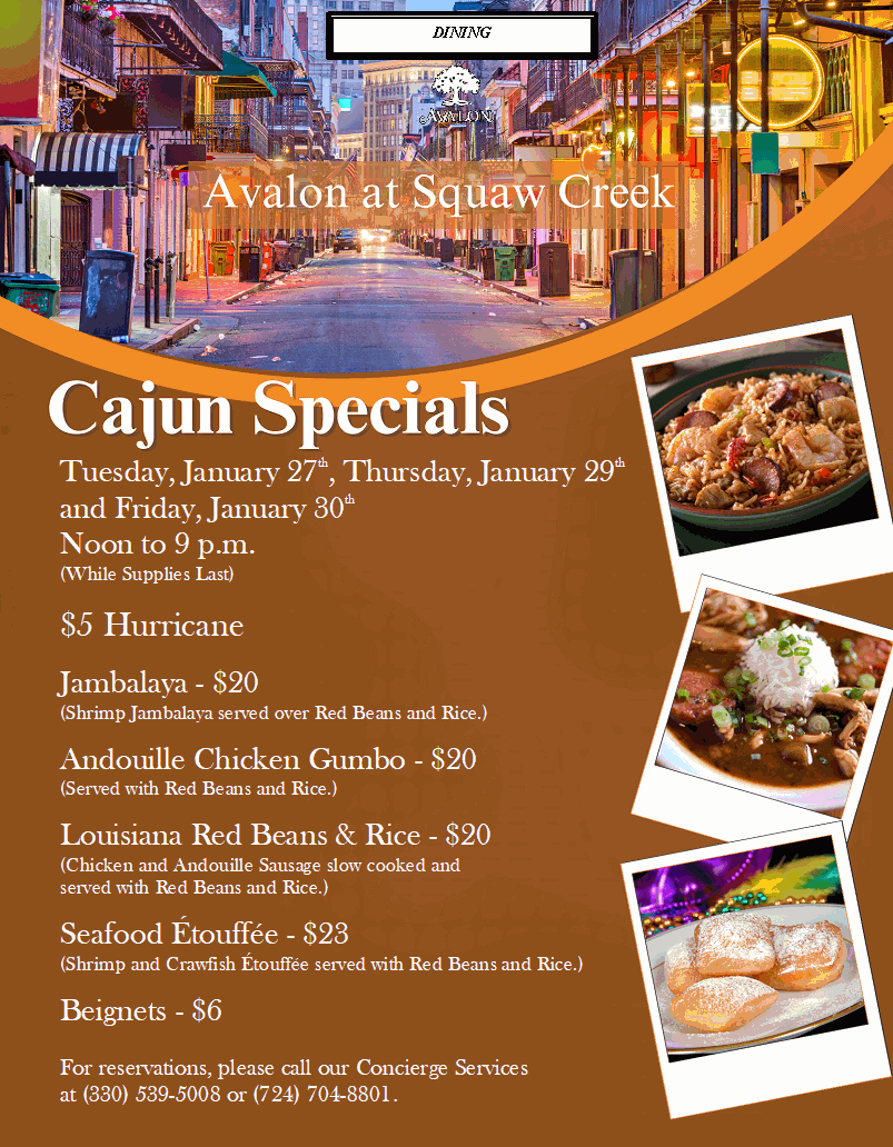 Cajun Specials January 27th, 29th and 30th at Squaw Creek