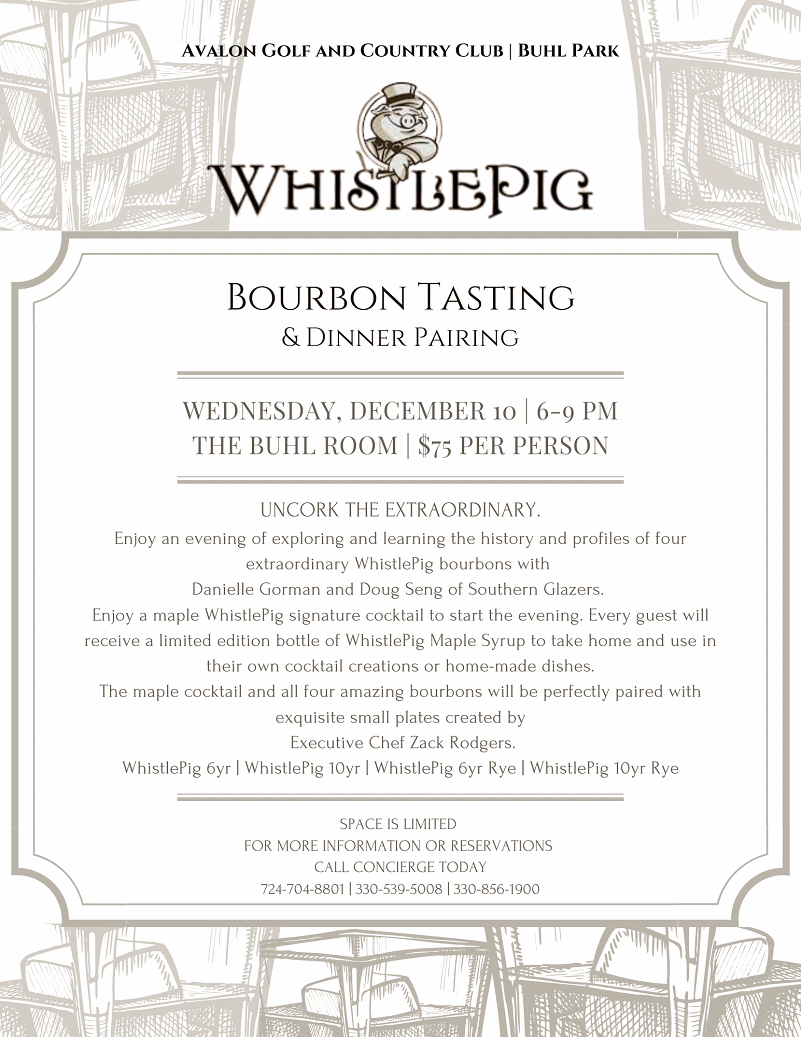 Dec 10 0 WhistlePig Bourbon Tasting & Dinner Pairing Wednesday, December 10th By Secretary | Dining, Wine Avalon at Buhl Park Read More