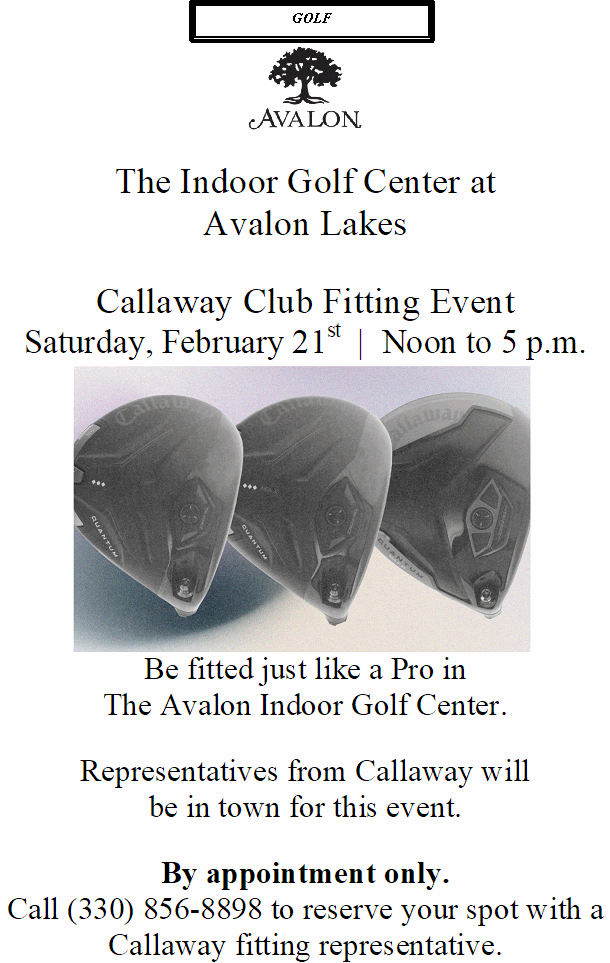 Callaway Club Fitting Event Saturday, February 21st at Avalon Lakes