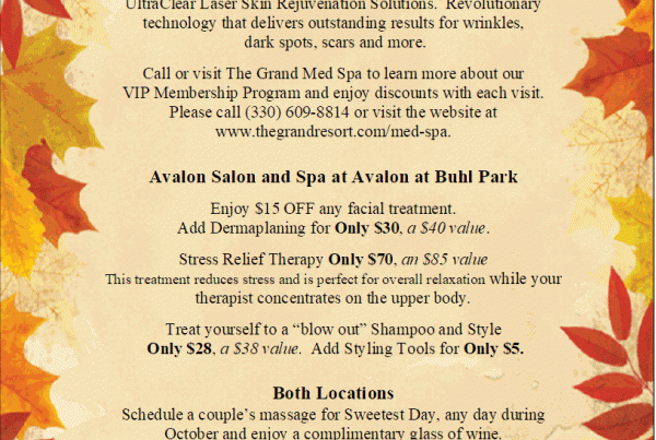 Spa appointments must be booked through the Grand Salon & Spa at (330) 609-8817