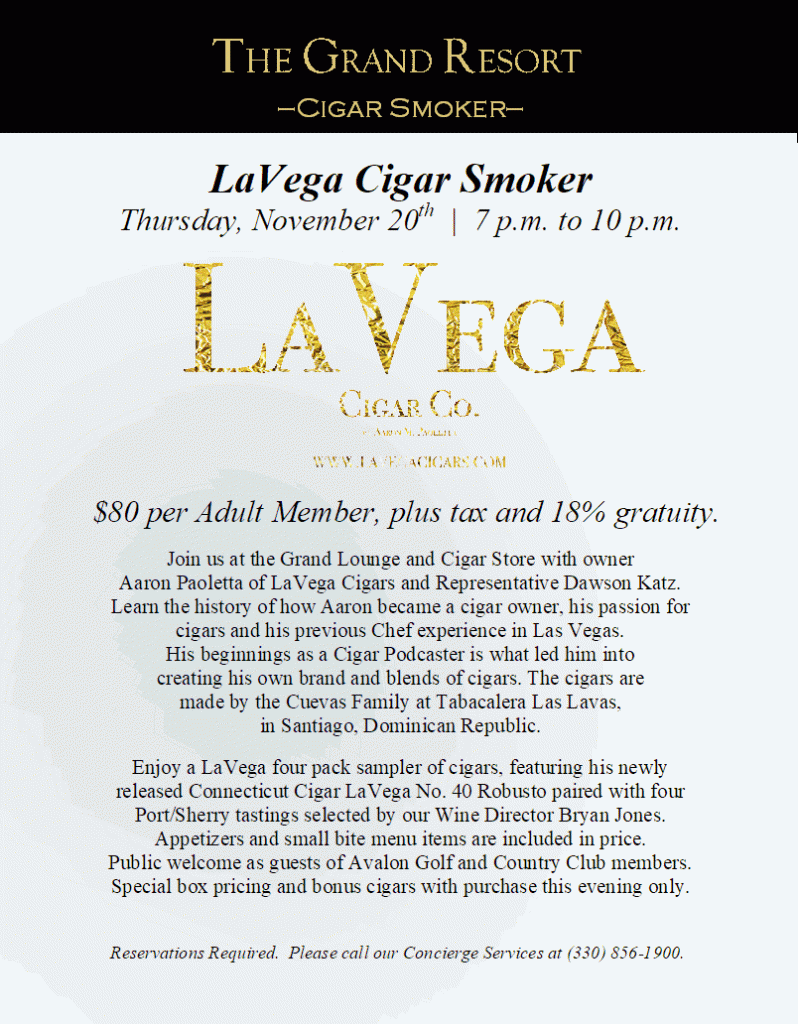 November 20, 2025 0 LaVega Cigar Smoker Thursday, November 30th at The Grand Resort By Secretary | Cigar, Dining
