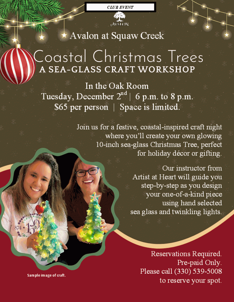 December 2, 2025 0 Coastal Christmas Trees Tuesday, December 2nd By Secretary | Dining A Sea-Glass Craft Workshop Read More